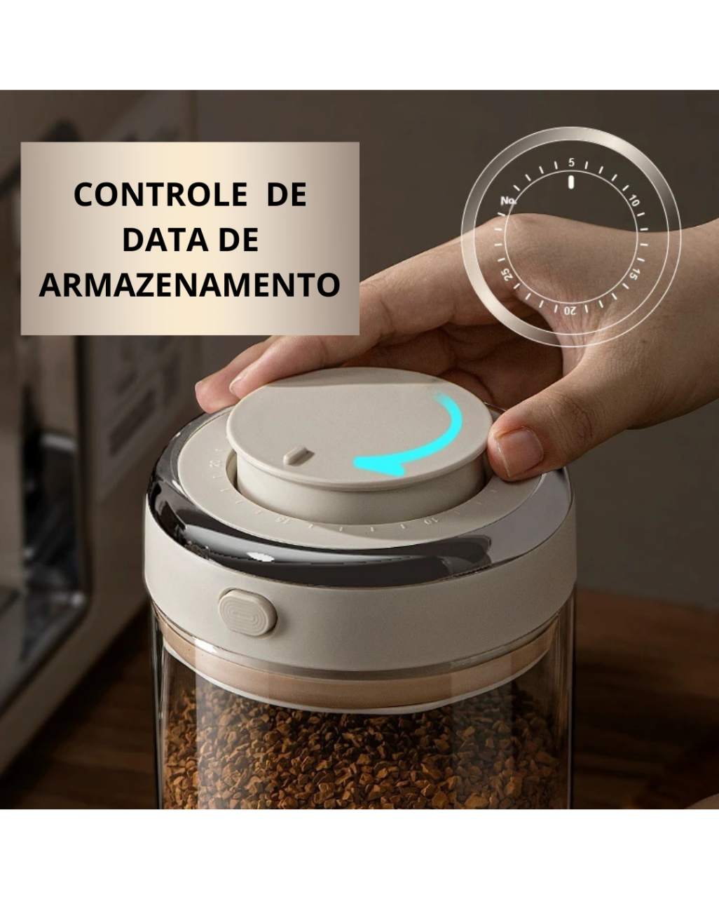 O diferencial está no rastreador de data digital integrado à tampa, permitindo que você registre a data de armazenamento e monitore com precisão o frescor. Além disso, a válvula unidirecional libera dióxido de carbono, evitando alteração do sabor original, enquanto bloqueia ar e luz indesejados.