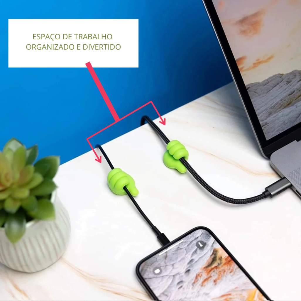 Feito de silicone premium, resistente e durável, ele é pequeno, mas extremamente útil: segura cabos, USBs, fones de ouvido, escovas, toalhas e até objetos do dia a dia como óculos, canetas ou pincéis de maquiagem.