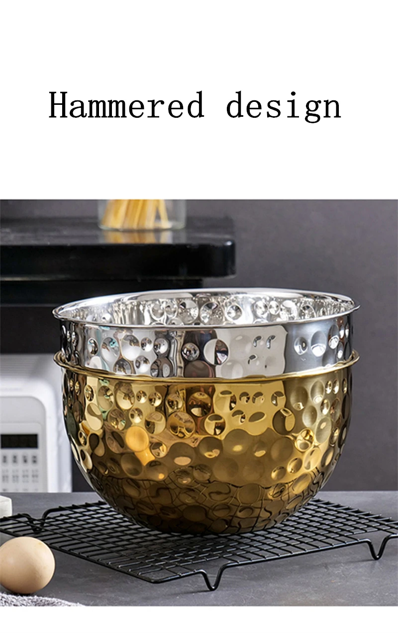 O corpo profundo da tigela evita respingos, permitindo que você misture ingredientes sem preocupações. Além disso, o aço inoxidável de alta qualidade garante resistência à ferrugem, durabilidade e segurança em contato direto com alimentos. Sua forma empilhável permite fácil armazenamento, otimizando espaço na cozinha, refeitório ou sala de jantar.